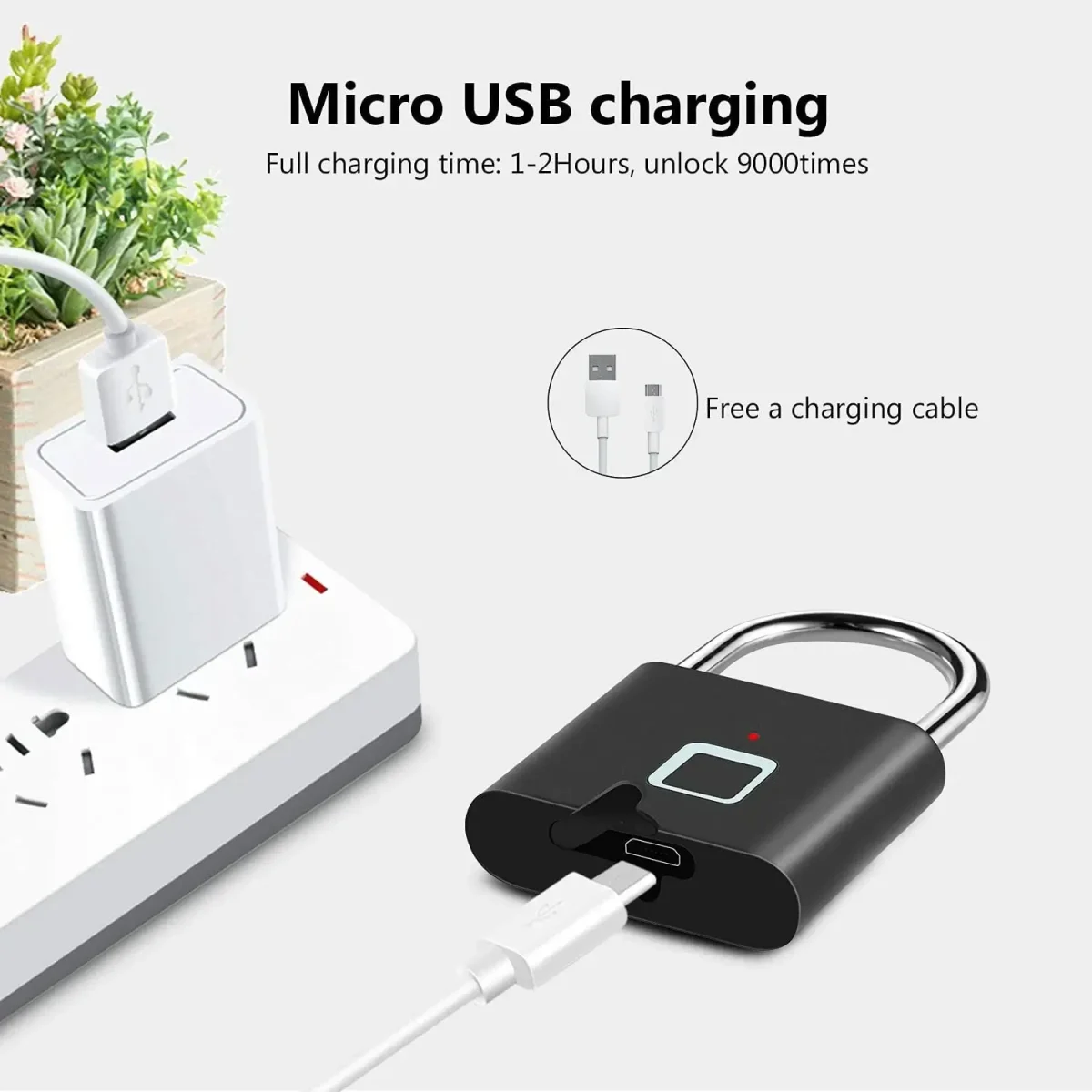 Secure your belongings with this smart fingerprint padlock. Keyless and portable, perfect for gym, home, or travel. Anti-theft design and rechargeable battery.